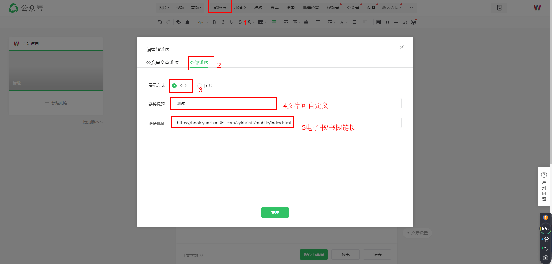 方法一:設置文章中的原文鏈接為電子書/書櫥鏈接